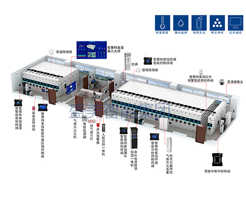 檔案庫房一體化管理總臺 檔案庫房環控管理系統 RFID檔案管理系統 檔案庫房密集架 檔案庫房消防管理系統 檔案庫房安防管理系統 檔案庫房漏水監測子系統 智能檔案選層回轉柜 檔案除塵凈化消毒設備